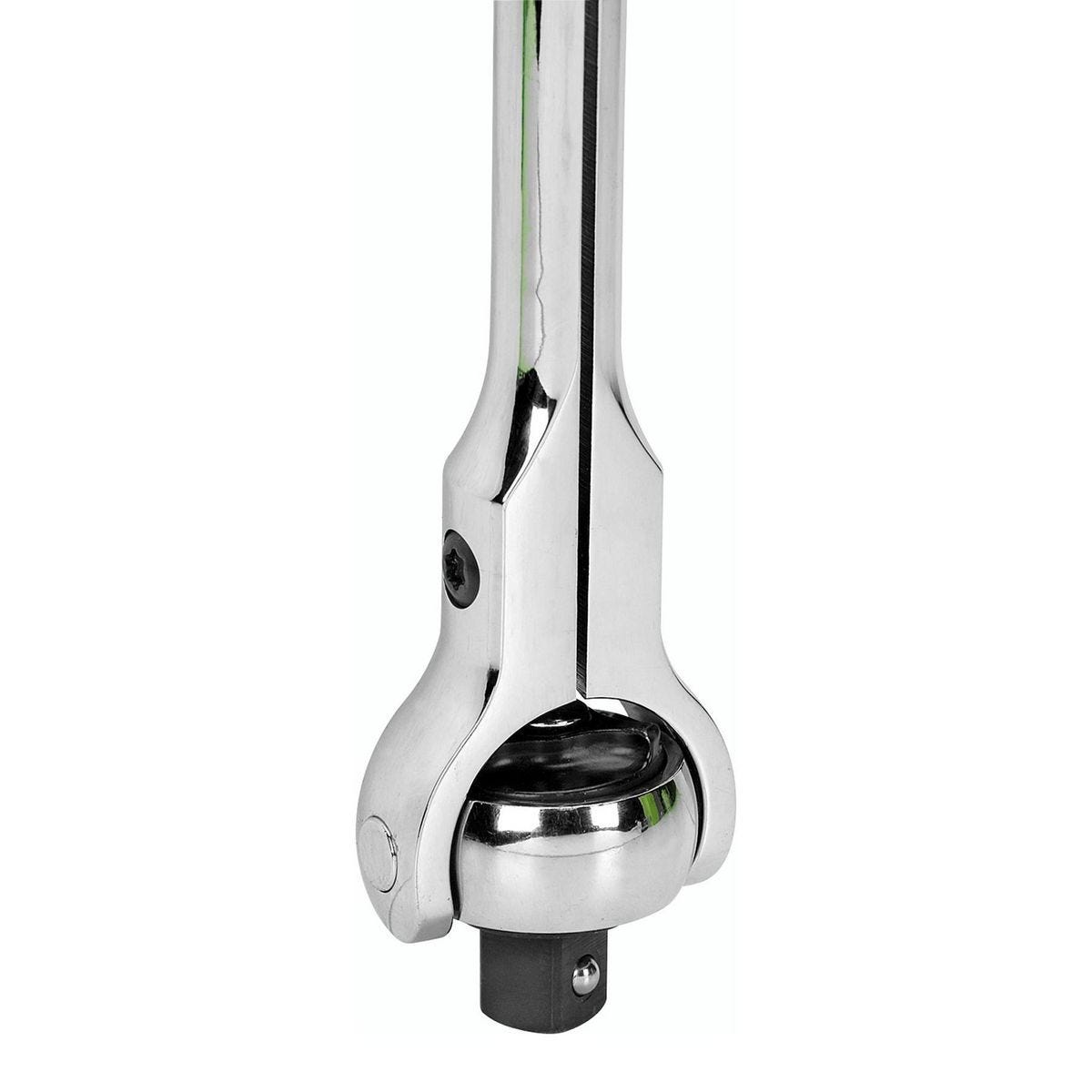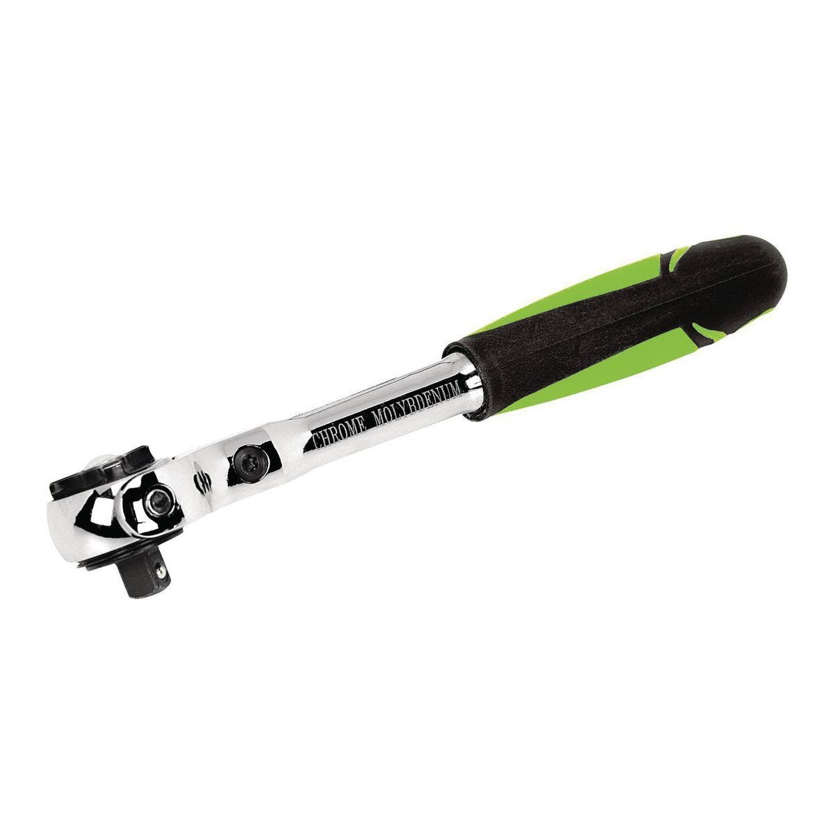 This swivel head ratchet can be a life saver in tight spots! The head rotates a total of 270 degrees to accommodate a wider range of applications compared to standard ratchets. This reversible swivel head ratchet features a cushioned rubber handle for comfort and heavier torque application. Whether performing general maintenance around the house or tuning up your vehicle, this swivel head ratchet provides the perfect combination of power and versatility.