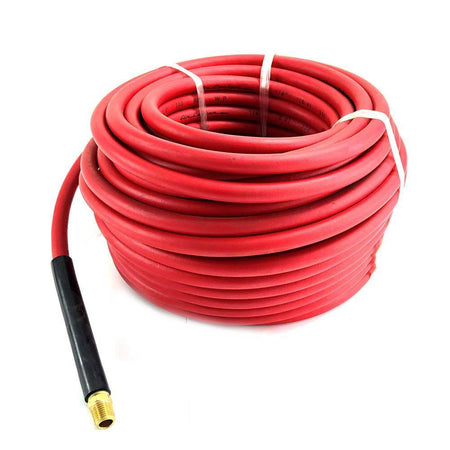 This rubber air hose is ideal for rugged applications where the hose may be dragged over concrete or other rough surfaces. The rubber construction offers very good cold weather flexibility and coils easily for storage. It is ideal for garage, shop, industry, home and many other applications.