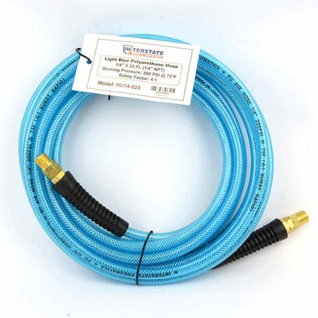 HU14-025 1/4" 25 ft Light Blue Polyurethane Hose (1/4" NPT) Solid Fitting