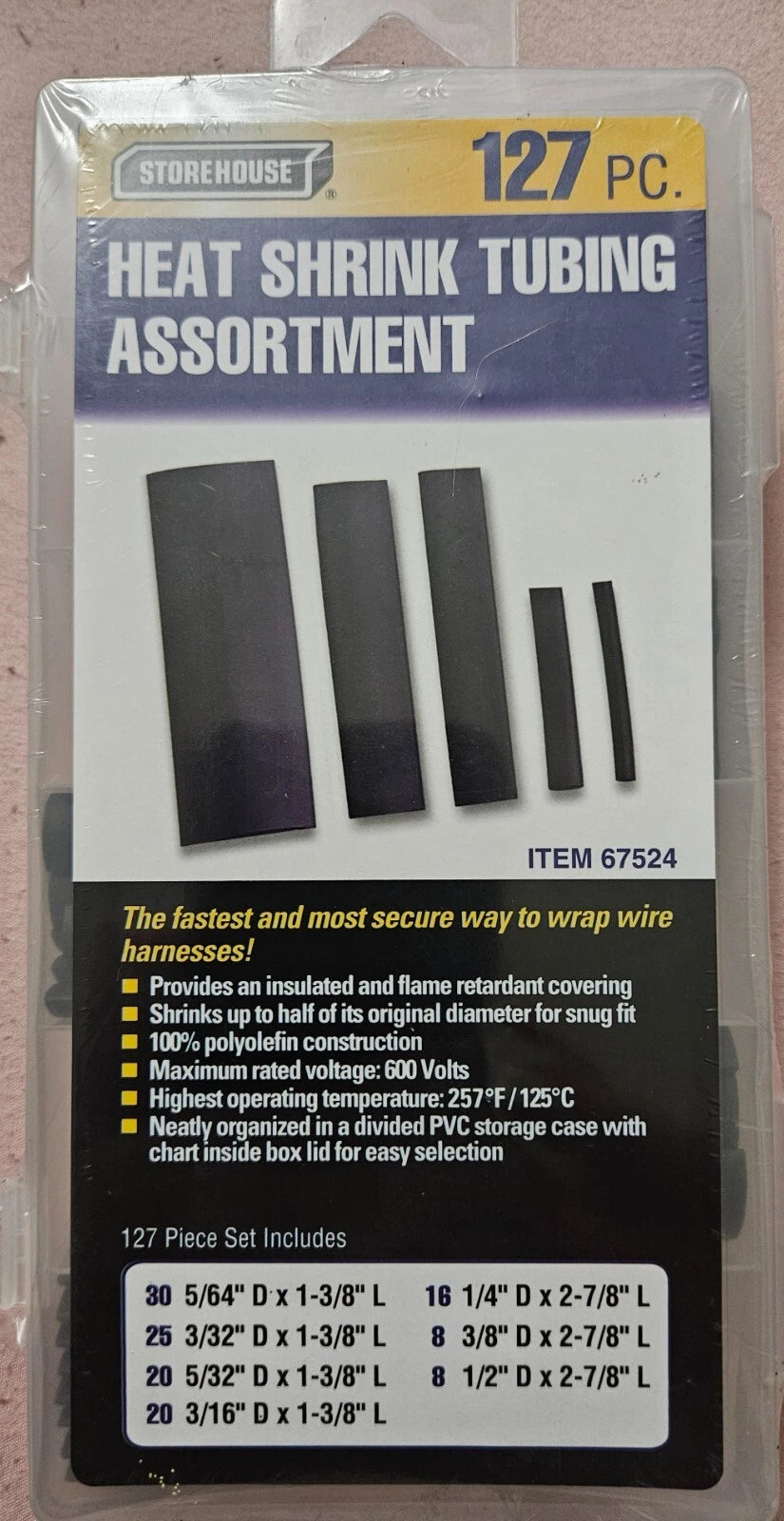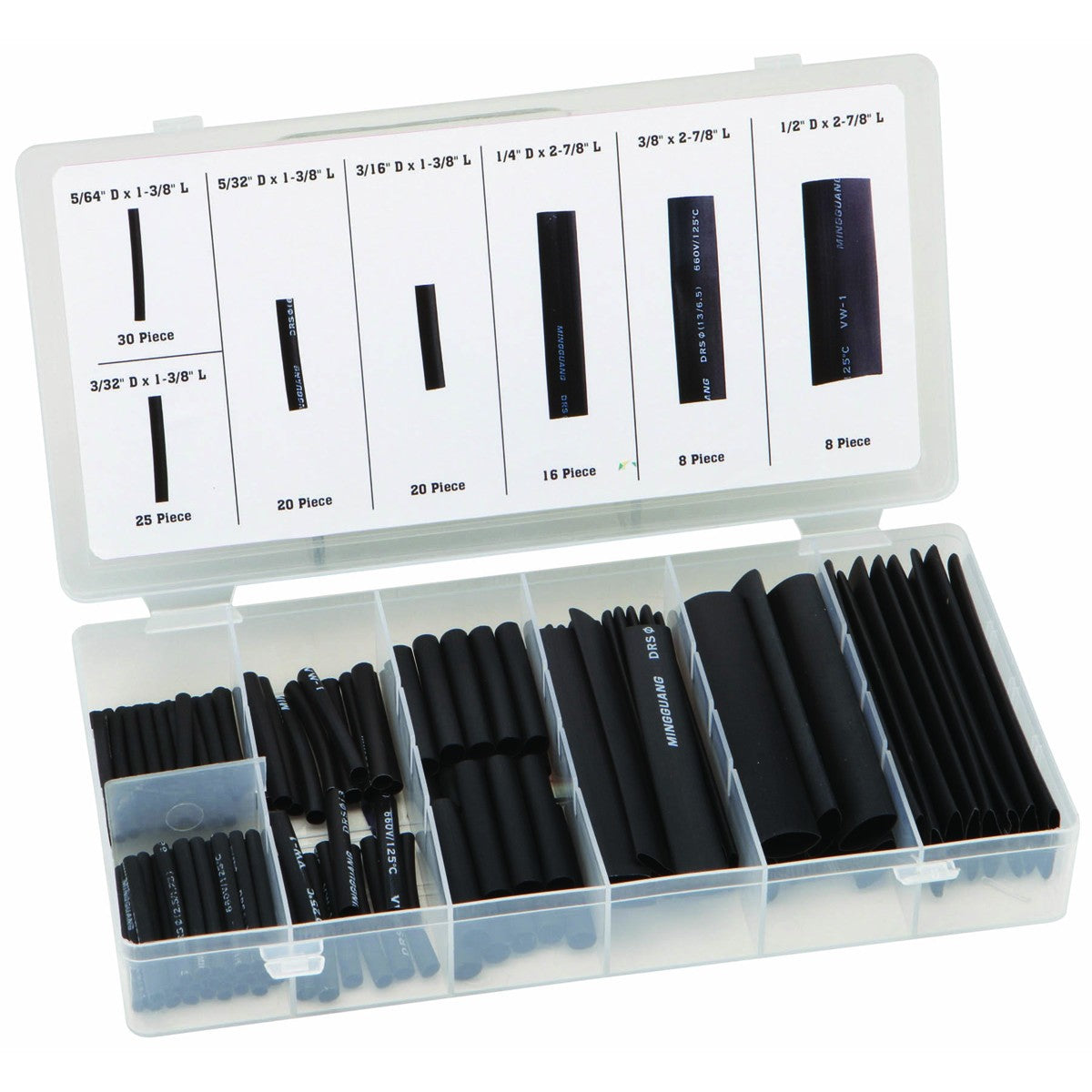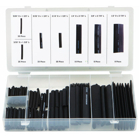 For anyone performing electrical work, this heat shrink tubing set is a must-have! The set includes a wide range of sizes for automotive, boat, motorcycle, ATV and household electrical applications! The heat shrink tubing set is constructed of 100 percent durable polyolefin rubber that shrinks up to half its original diameter for a snug fit. This handy heat shrink set is perfect for professional electricians and homeowners alike.
