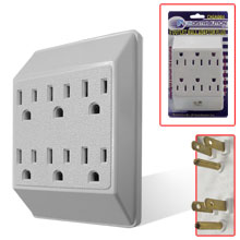 6 Outlet Wall Tap Grounded AC Power Adapter Grounding Electrical Receptacles UL