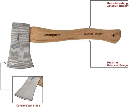 The Big Horn 21 Oz Heavy-Duty Hatchet Axe is a robust and versatile tool crafted for framing, roofing, chopping, wood, woodworking, and other outdoor applications. Engineered for durability and precision, this hatchet axe boasts a sharp carbon steel blade that is designed to be re-sharpened to maintain peak sharpness over time. The hatchet axe’s head is crafted from drop-forged steel to deliver strength and durability for various demanding applications. Upgrade your woodworking arsenal without our hatchet axe, a resilient wood cutting solution at your disposal.