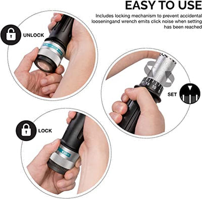 - Produces a crisp, audible click over the entire torque range
