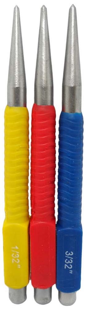 Drop forged tempered steel Large square striking surface Sizes: 1/32", 1/16", 3/32" Manufacturer looks and details may vary |