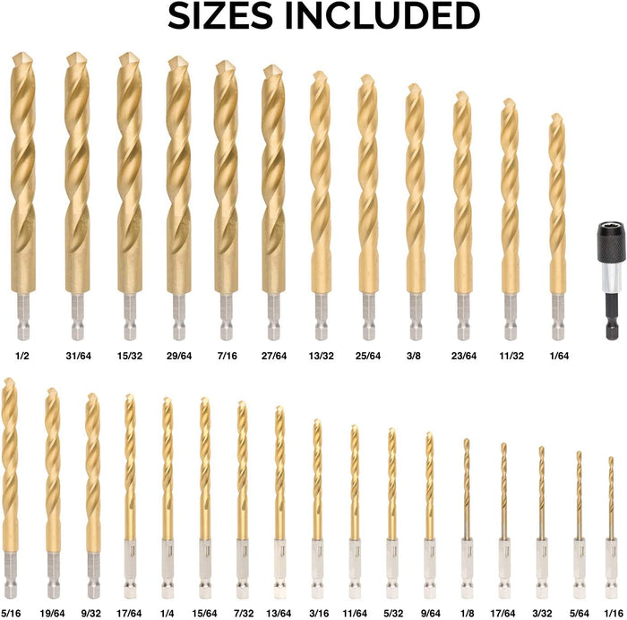 30 Piece Hex Shank Quick Change Drill Bit Set Titanium for Snap in On Changing Chuck
