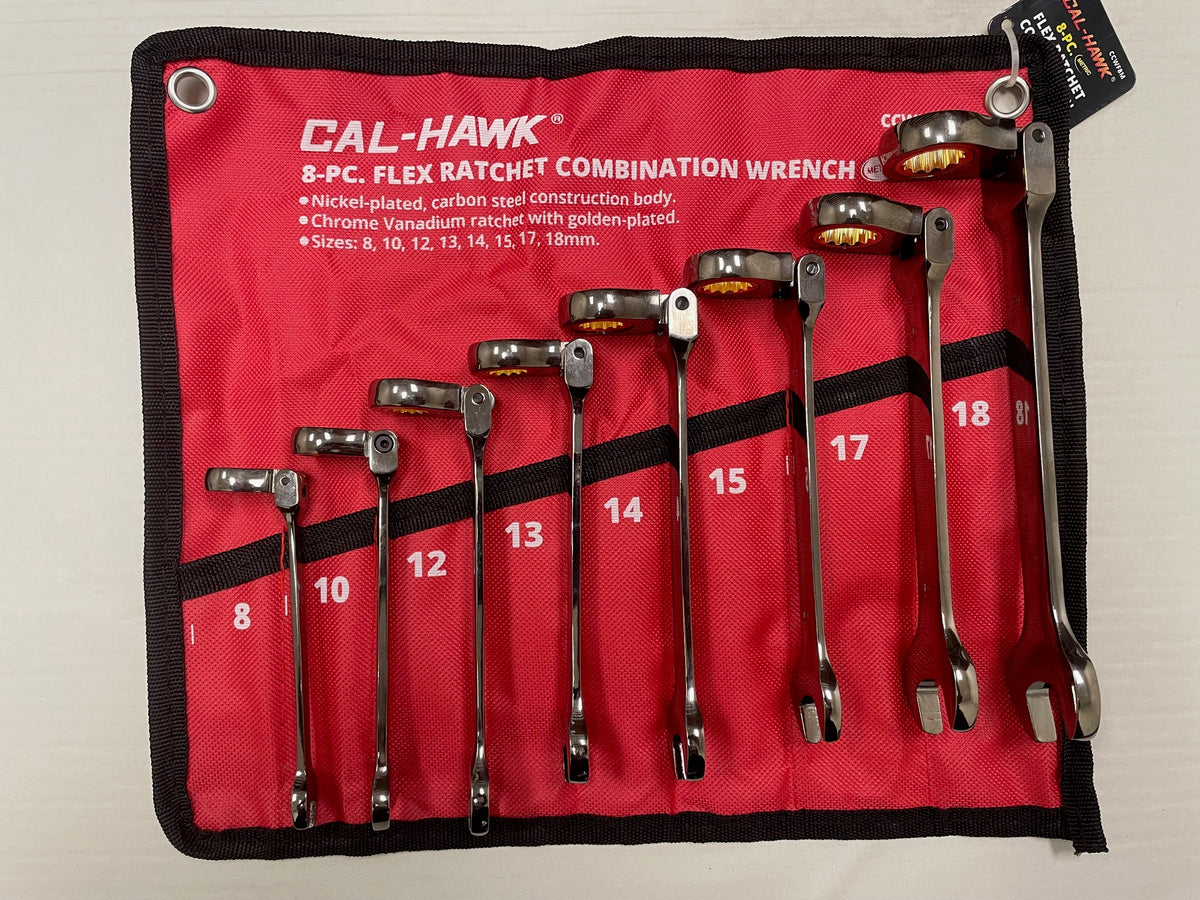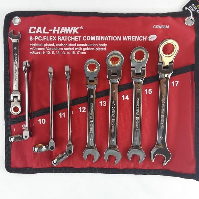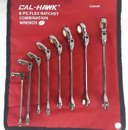 8 Piece Metric Flex Head Ratchet Open End Combination Wrench Set