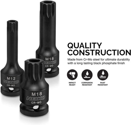 - Impact Quality 12 Point Spline Sockets -M12h, M14h, M16h, M18h, 42mm Short -M12h, M14h, M16h, M18h, 78mm Long