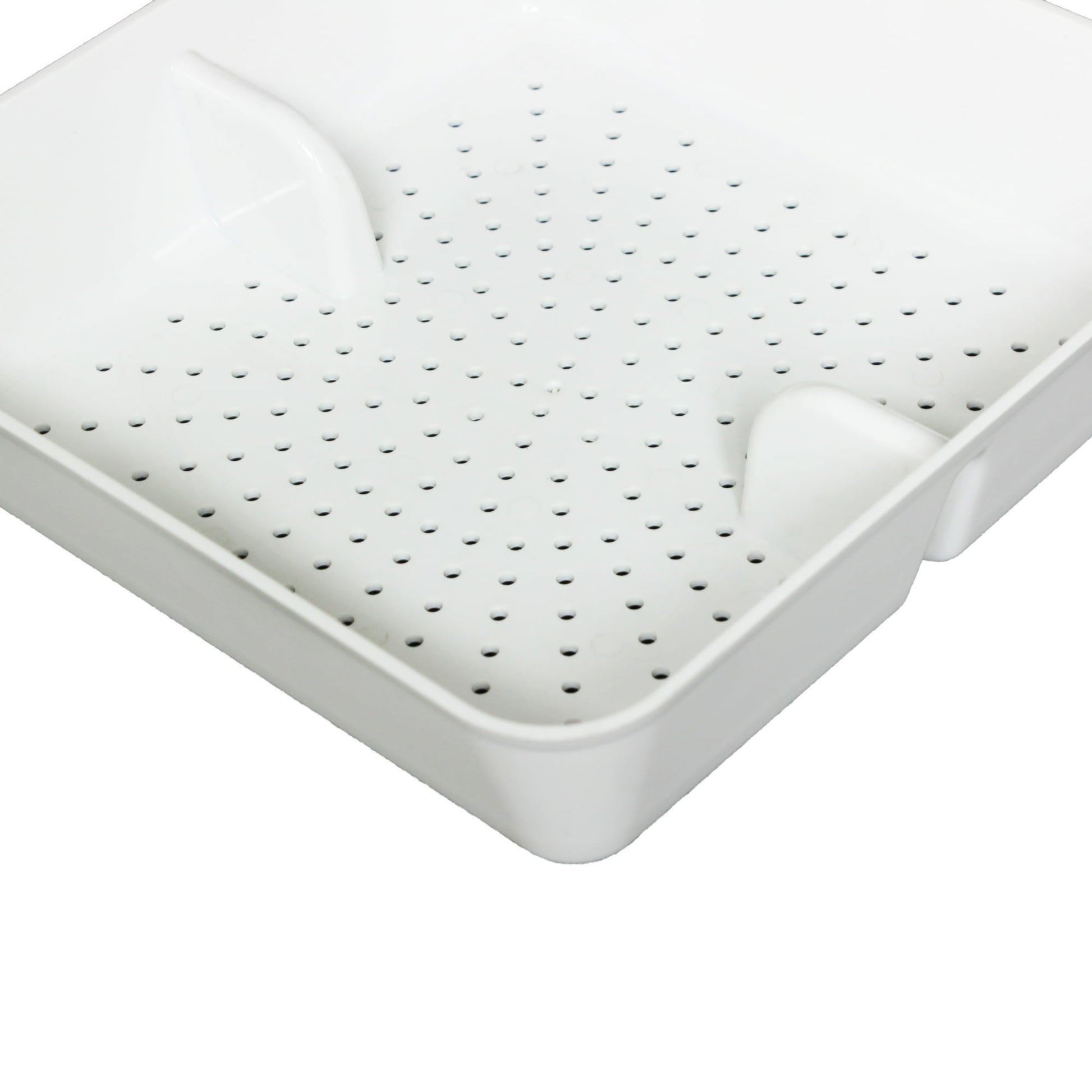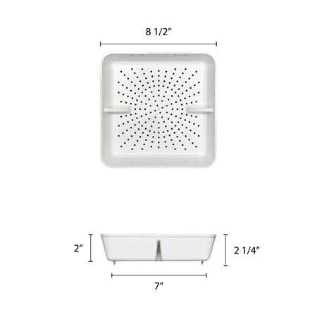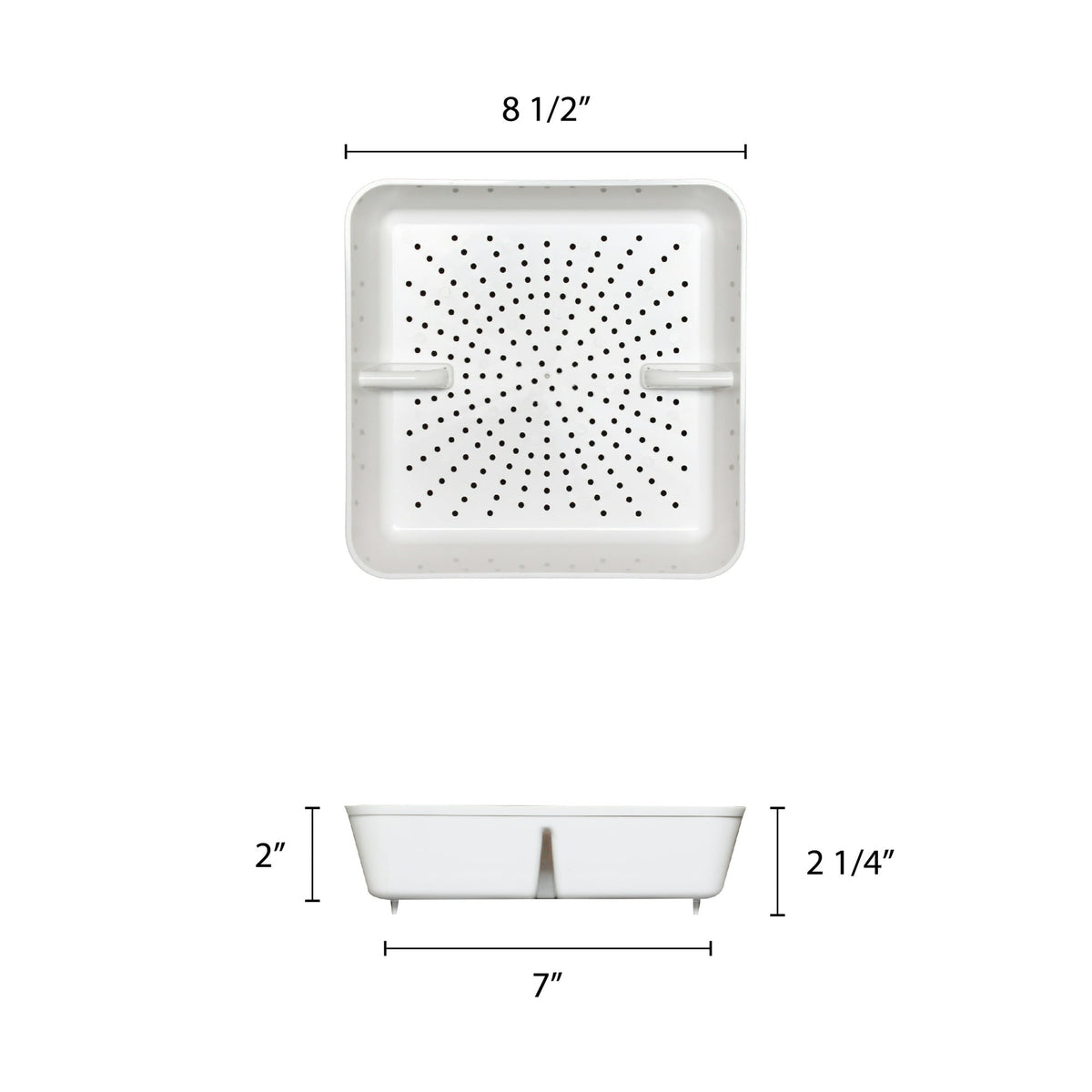 Plastic floor drain strainer. Measures roughly 8 1/2" x 8 1/2" x 2 1/4"