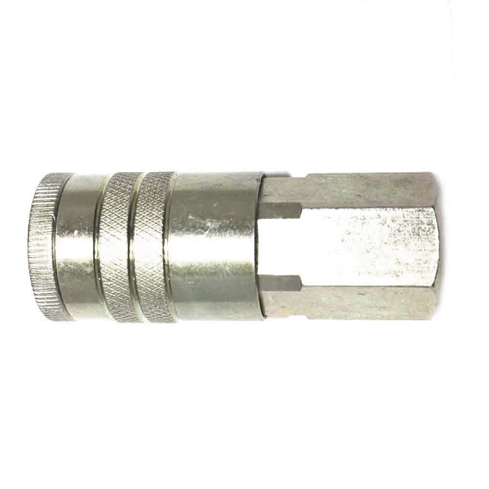1/2 Inch Industrial Steel Coupler x 1/2 Inch Female NPT. These couplers are interchangeable with the Industrial (Hansen or Milton) Standard series couplers produced by other manufacturers. Precision machined from solid steel bar stock which provides longevity during mechanical shock in rugged applications. Maximum working pressure 300 PSI.