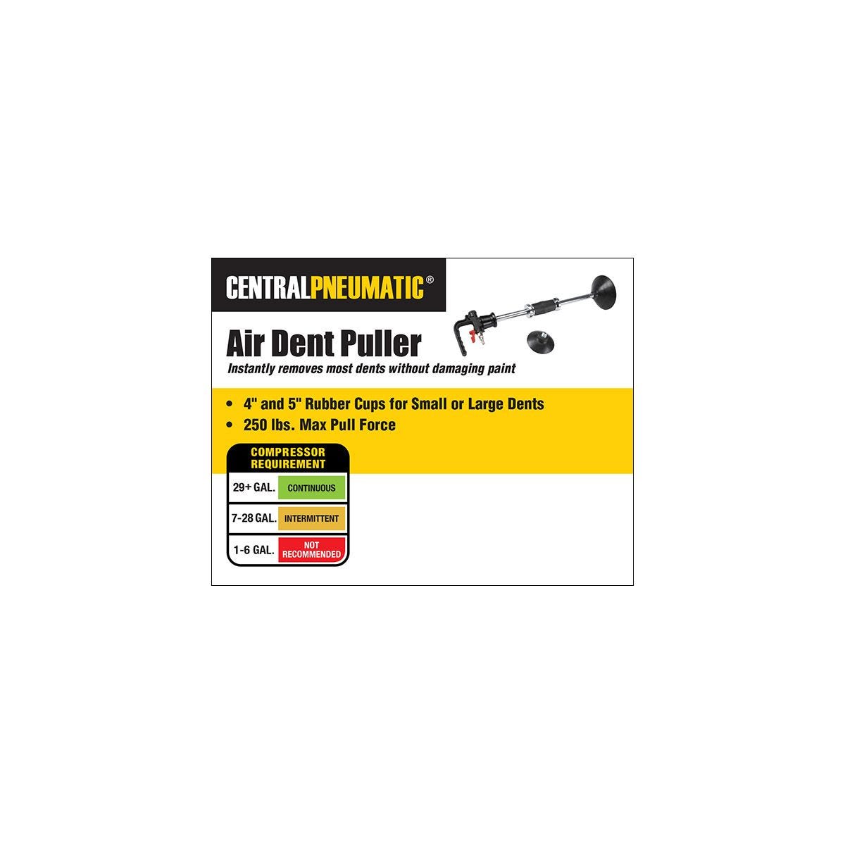 Get the power and versatility of a slide hammer without marring the finish by welding or drilling body panels. Pneumatic control creates a super-strong vacuum, making it easy to pull most dents out of panels.