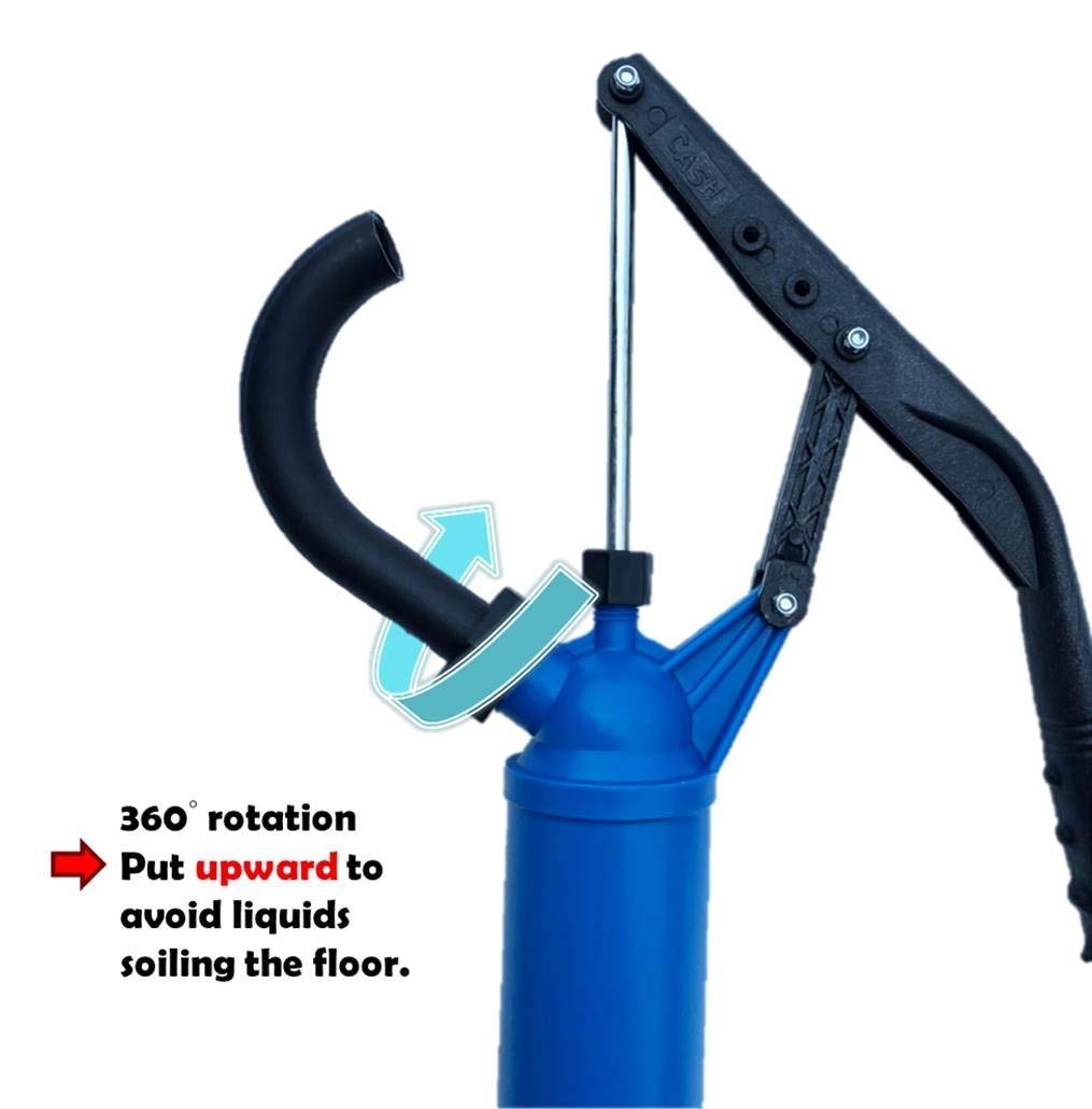 You can use a drum pump to empty or transfer the liquids contained within a barrel or drum. Here are some important details for Action Pump Hand Operated Drum Pump. For Use With: Lubricants, Def, Detergents and certain Alcohols. Features:- Features: Adjustable 8, 10 or 12 oz. Per stroke, Blue Action Type: Lever Discharge Tubing Material: Polypropylene Max. Viscosity: 1000 cps Discharge Tube Length: 6" Ounces per Stroke: 8, 10 or 12 oz. Suction Tube Type: Polypropylene Includes: Telescopic Intake Tube Max. Liquid Temp.: 140 Degrees F Outlet Size: 7/8" For Use With: Lubricants, Detergents and certain Alcohols Adapter Material: Polypropylene Item: Hand Operated Drum Pump Adapter Diameter.: 2" Suction Tube Length: 36" Suction Tube Outlet O.D. Size: 1-1/2" Wetted Materials: Polypropylene, Carbon Steel Housing Material: Polypropylene