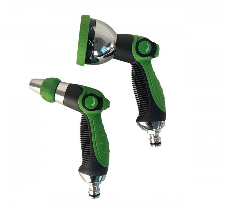 Watering nozzle has 10 spray patterns: Shower, Vertical, Stream Center, Cone, Full, Jet, Must Flat, and 1/2 Vertical