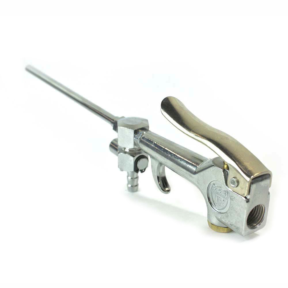 Siphon Spray Gun blows air / liquid (cleaning solution) to clean auto engines and other mechanical parts , it comes with a control valve to regulate density of mist. This blow gun is perfect for removing dirt, grime, and grease. It combines water/cleaning solution and air pressure to quickly clean, yet will not harm finishes. Comes standard with an extended tip (6" long) on this siphon spray blow gun along with 8ft of clear 1/4" pvc tubing.