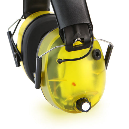 Protect your hearing while still being able to listen to conversations or keep an ear on machinery. These ear muffs feature cutting-edge noise reduction technology that blocks out only the sounds that exceed safety levels. Featuring over 200 hours of battery life on two AA batteries (sold separately), hands-free operation and an LED indicator light, these ear muffs offer user-friendly noise reduction ideal for the workplace or garage.