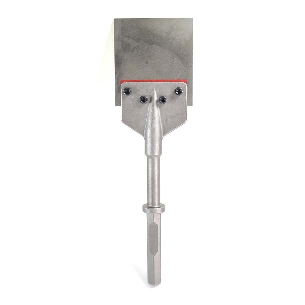 5" x 6" Floor Scraper Head with blade install on the shank. The Floor Scraper head is part of a full line of carbide bits, carbide cores and steel points and chisels for hammer drills, rotary hammers and demolition hammers. Provides easy removal of floor coverings such as tile, carpet, adhesives and more. This model is fitted with a 1-1/8" shank to fit most standard demolition hammer.