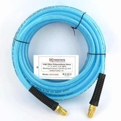 HU14-050 1/4" 50 ft Light Blue Polyurethane Hose (1/4" NPT) Solid Fitting