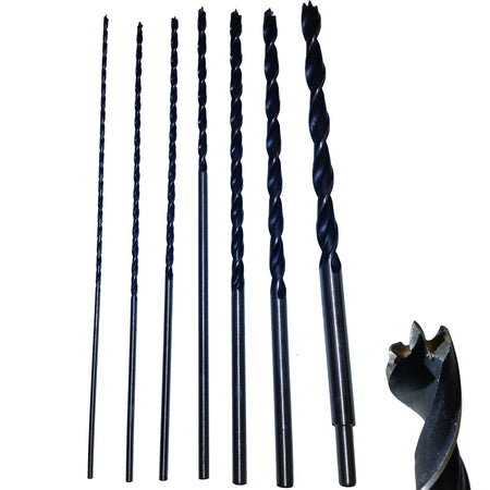 This 7 piece extra long brad point drill bit set is great for drilling wood.