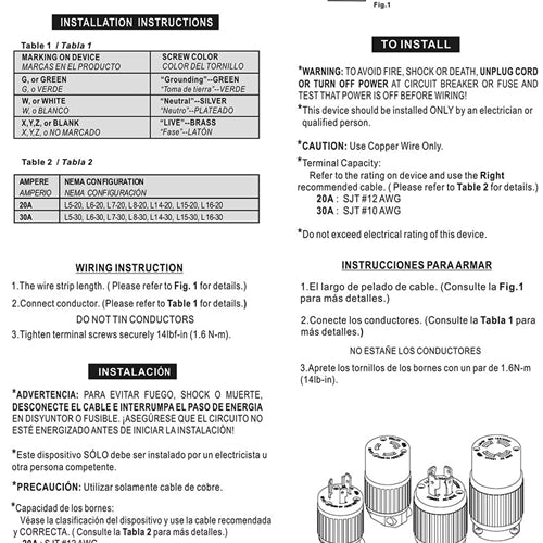 Male Twist Lock Electrical Plug 3 Wire, 30 Amps, 125V, NEMA L5-30P YGA024.