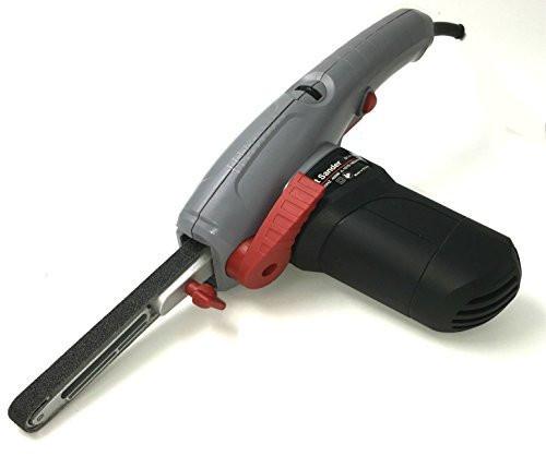 Grind and blend hard-to-reach areas with power and efficiency mini skinny electric belt sander. Ideal for use in limited space, this sturdily built 110 V AC belt sander works on flat surfaces, corners, and radii.