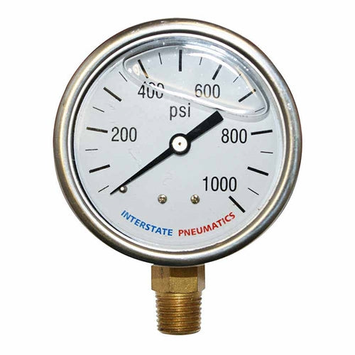 Oil Filled Air Pressure Gauge 1000 PSI 1/4' NPT Bottom Mount Gage
