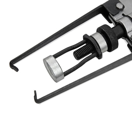 This valve stem Engine Overhead Valve Spring Compressor Seal Keeper Tool is ideal for removing valve springs, spring retainers by compressing the valve spring retainer and exposing the valve keeper, remove keepers, uncompress the tool then remove spring. It features a reversible jaw / adaptor and automatic cam-action locking to a re-determined setting. The tool spring depth reach grips to retainer are adjustable to fit most large and small spring applications.