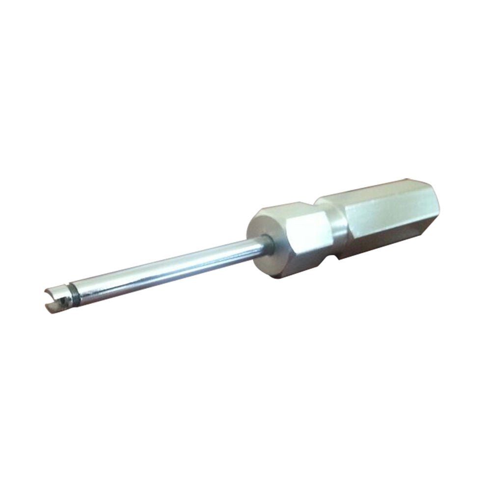 Professional Locking Tire Core Removal Tool has a steel tip with two spring loaded micro ball bearings to lock the tire valve core from shooting away during removal. It also has an aluminum handle with magnetic end to safely pick and hold the valve core. It comes with steel pocket clip.