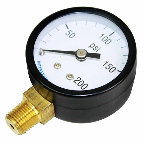 Pressure Gauge 200 PSI 2" Diameter 1/4" NPT Bottom Mount.