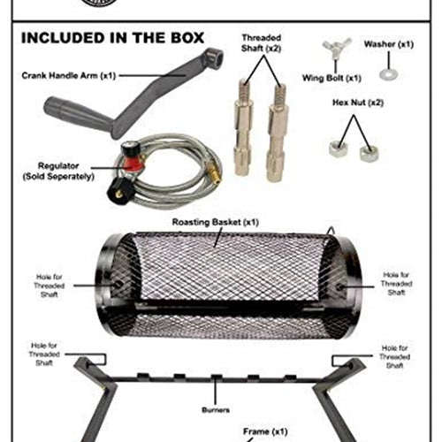 The La Barbacoa's 5 burners are evenly spaced to ensure that the chilies or veggies are evenly scorched. The roaster comes in at a weight of about 38 pounds.