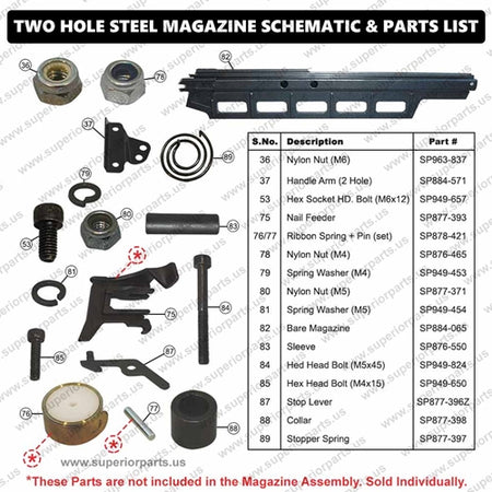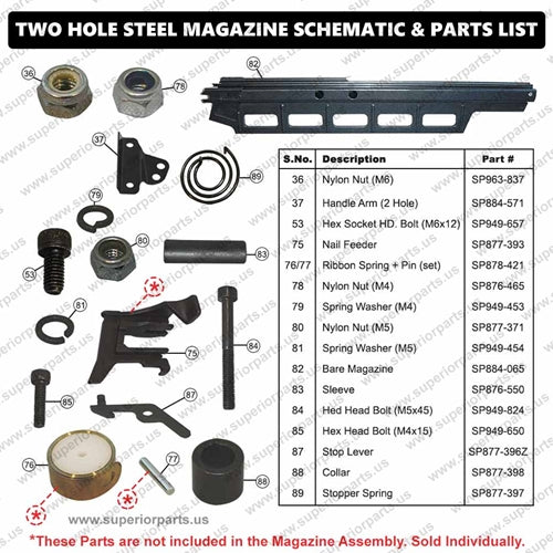 Superior Parts SP 884-570 Aftermarket Magazine Assembly (Steel) 2-Hole Magazine Nail Rack for Hitachi NR83A Nailer Gun. Replaces Hitachi 877392Z.