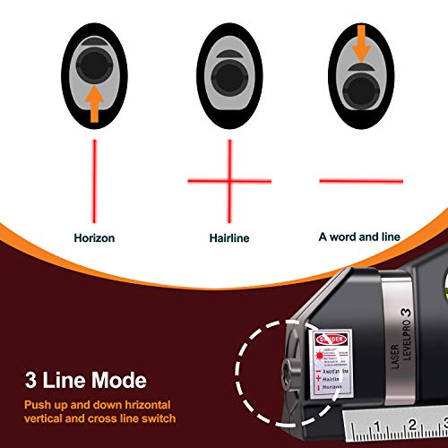 - 3 Way Approach: Combines a 8FT Measuring Tape, Triple-positioned level bubble, and a Laser Level to provide the best results possible. ( Laser level has accuracy of +/- 2mm)