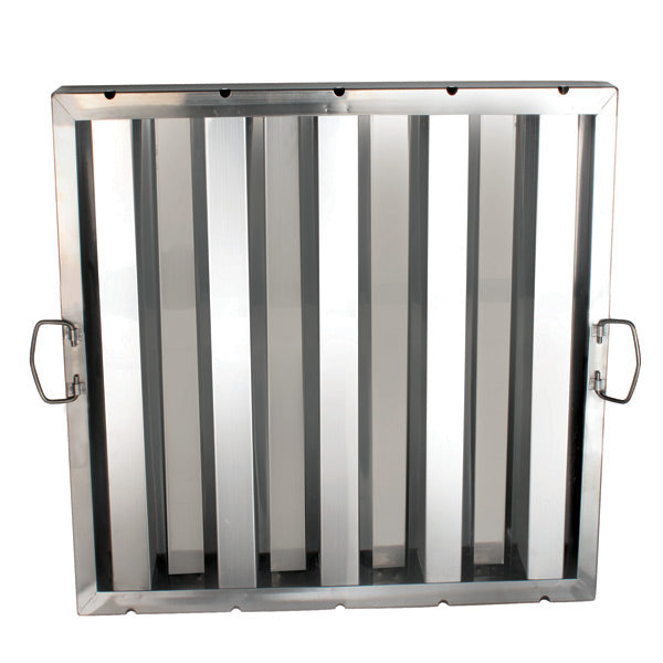 This hood filter features welded stainless steel construction with rugged drop handles. Ensures that solids and grease are deposited directly into baffles and drains out. Easy to clean with detergent and water, also dishwasher safe.