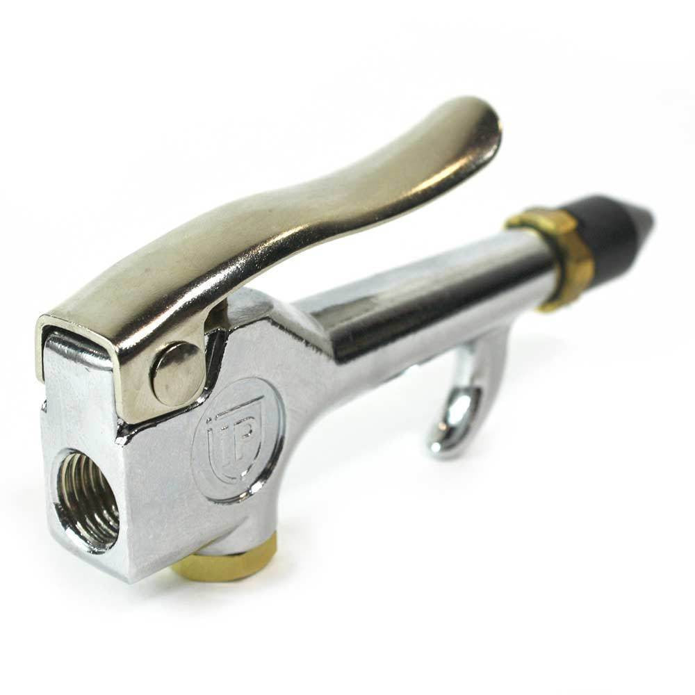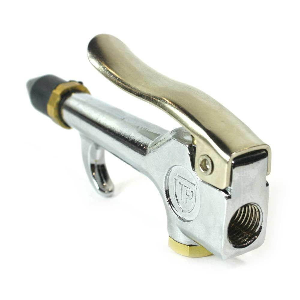 Standard Thumb Lever Air Blow Gun with Brass Tip. A well designed thumb grip makes it easy to operate at any given pressure. Lever-activated for simultaneous valve action. Contour of body and lever fits hand for ease in handling. When you need to clear away debris or other material from your work area, blow it away with this powerful full force blow gun Comes with a 1/8" NPT Brass Tip molded on Brass. A must use tool where metal tip could mark delicate finish in molds fresh paint.Specifications: