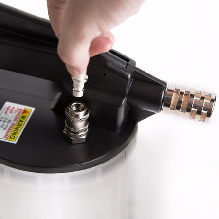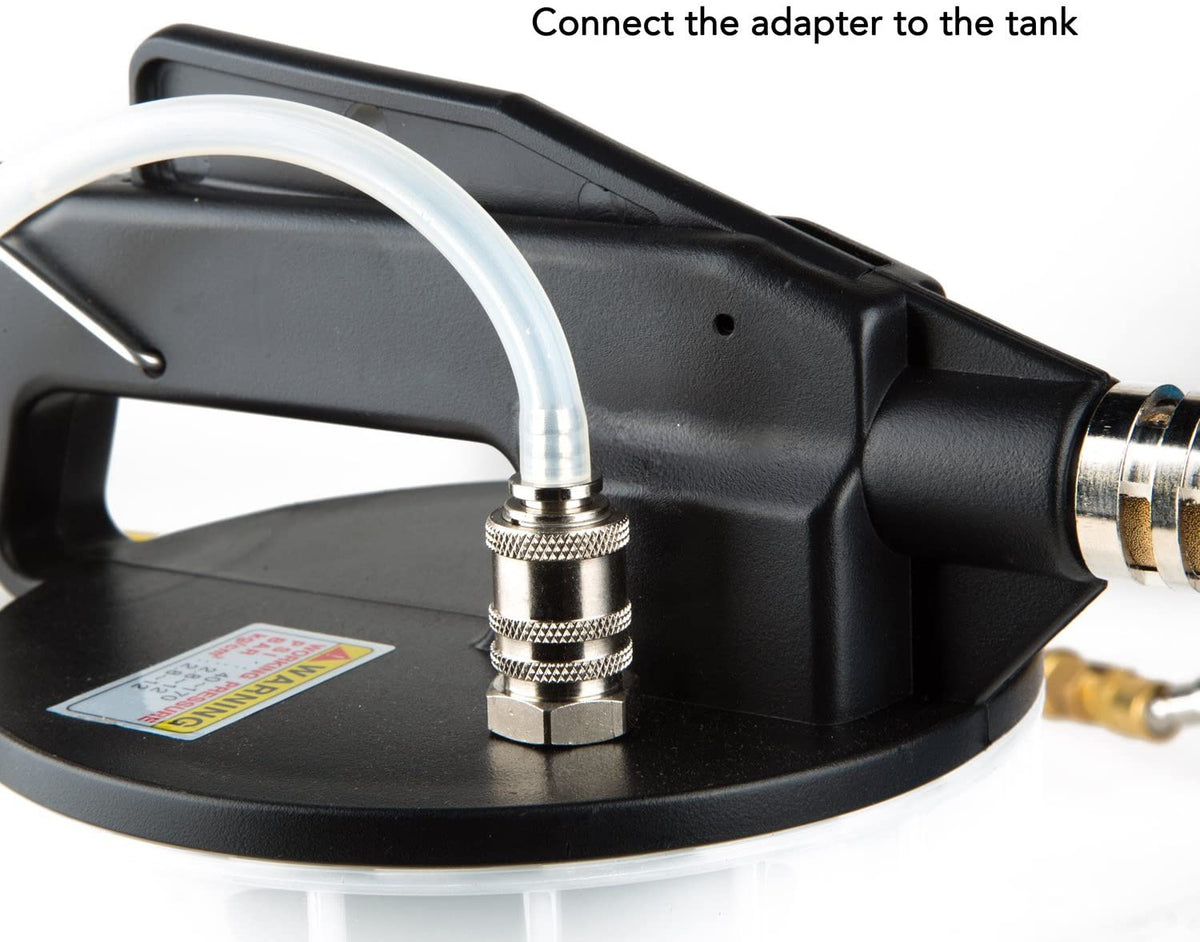 Brake bleeder works by using compressed air for the built-in venturi bleeder system and produces a vacuum to bleed and flush the hydraulic brakes and clutches. Set includes 1 piece of 40-inch silicone hose with universal rubber adapter. Designed to fit most vehicle brake oil bleeder fittings and use with most standard and ABS brake systems.